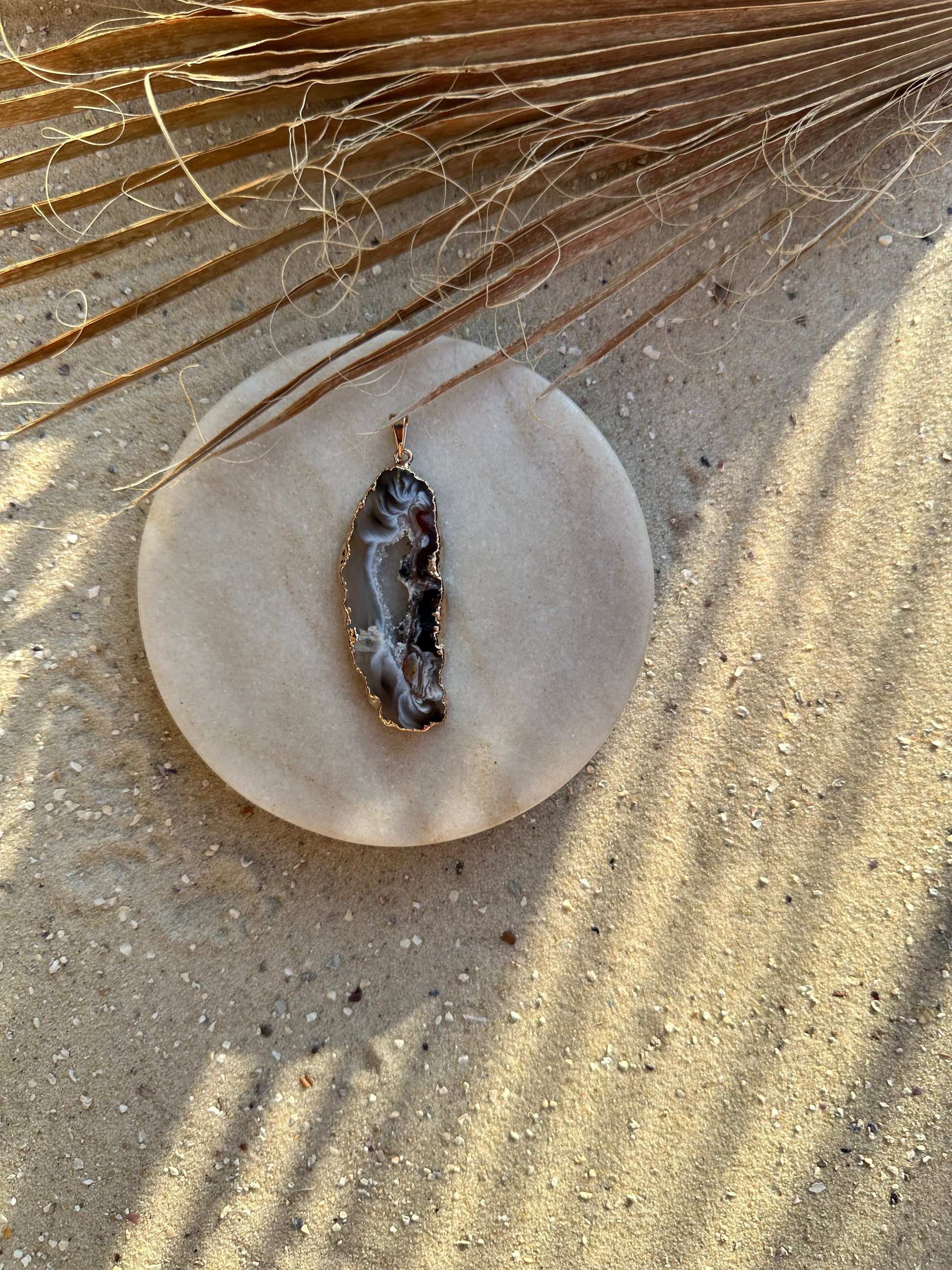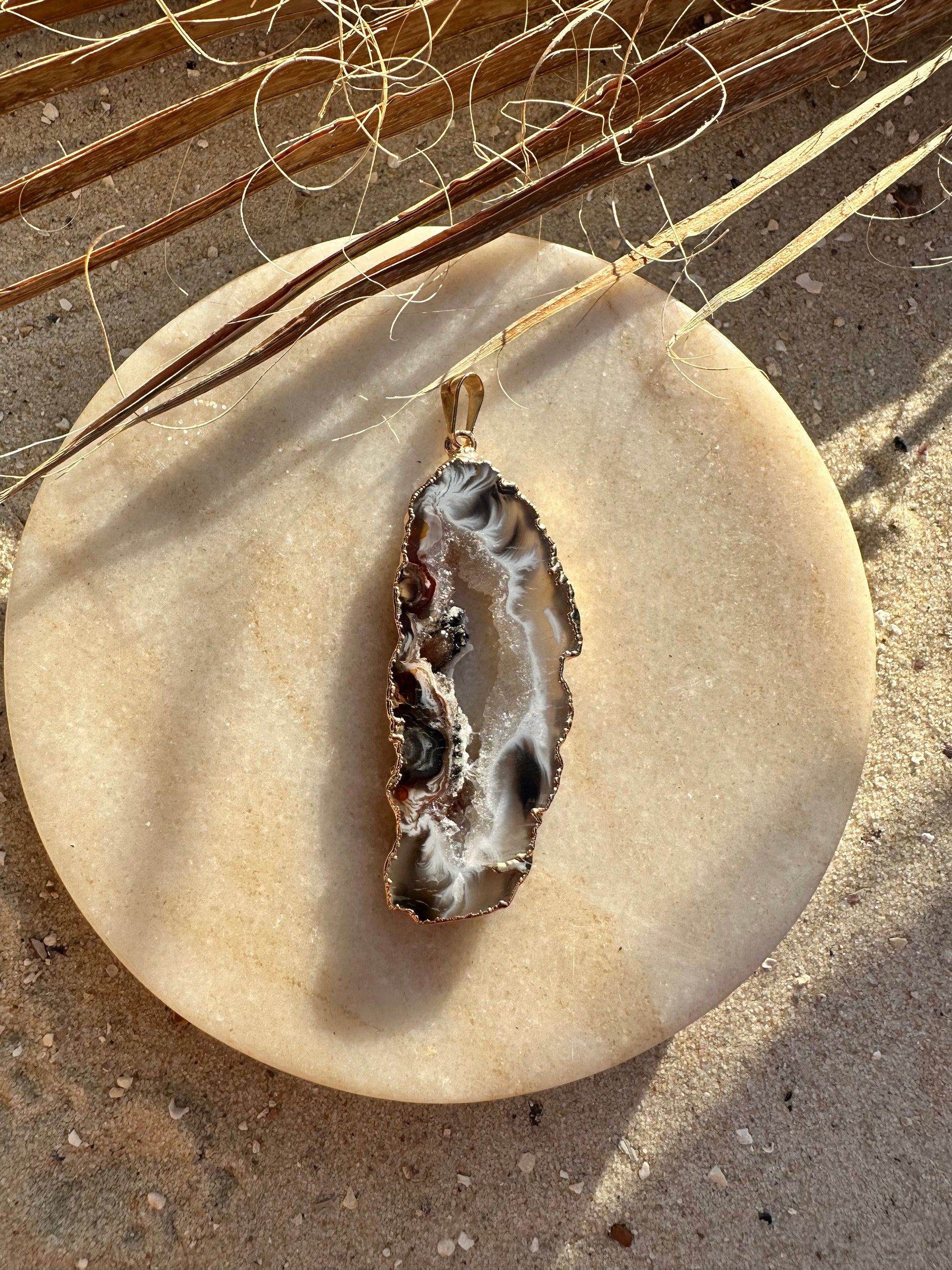 Achat Geodenscheibe Anhänger – Goldene Erdung mit Stil💛