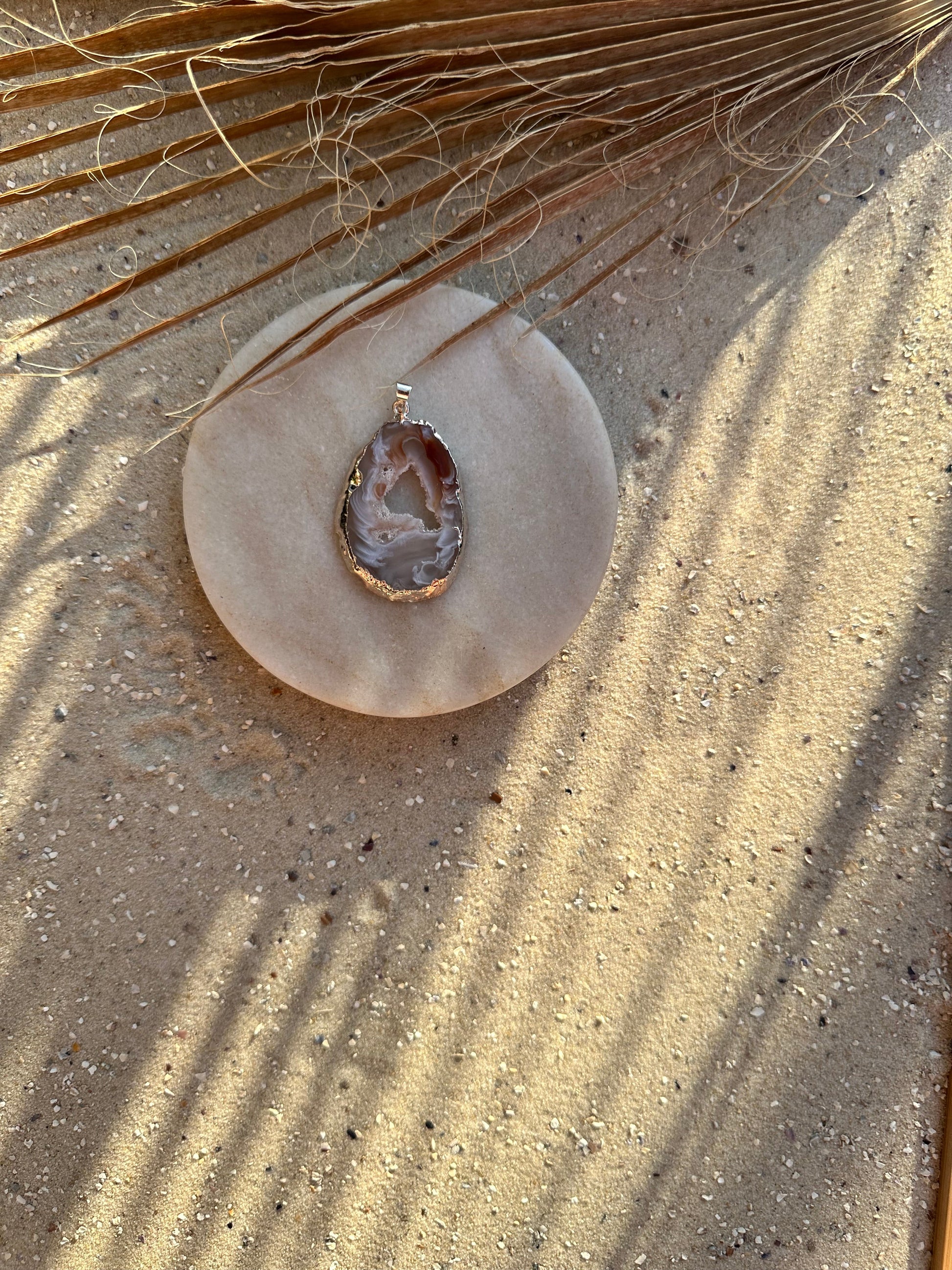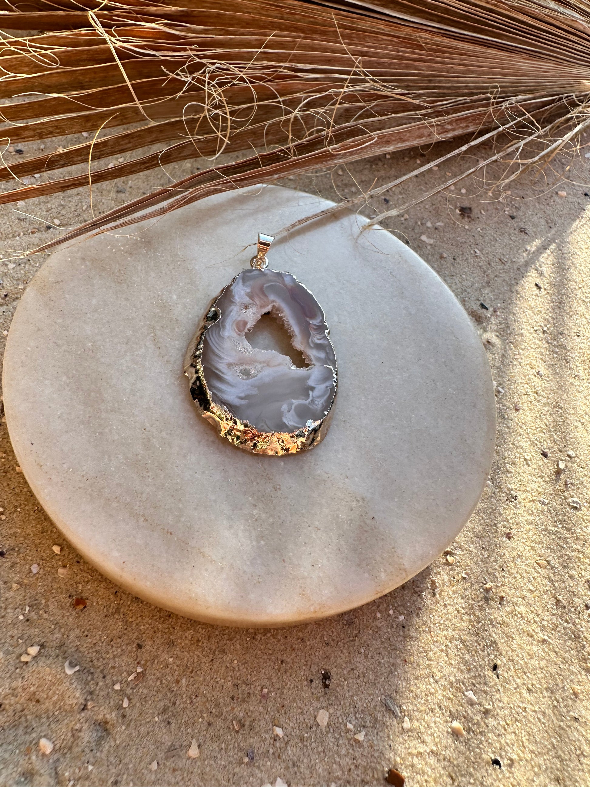 Achat Geodenscheibe Anhänger – Silberne Erdung & Schutz