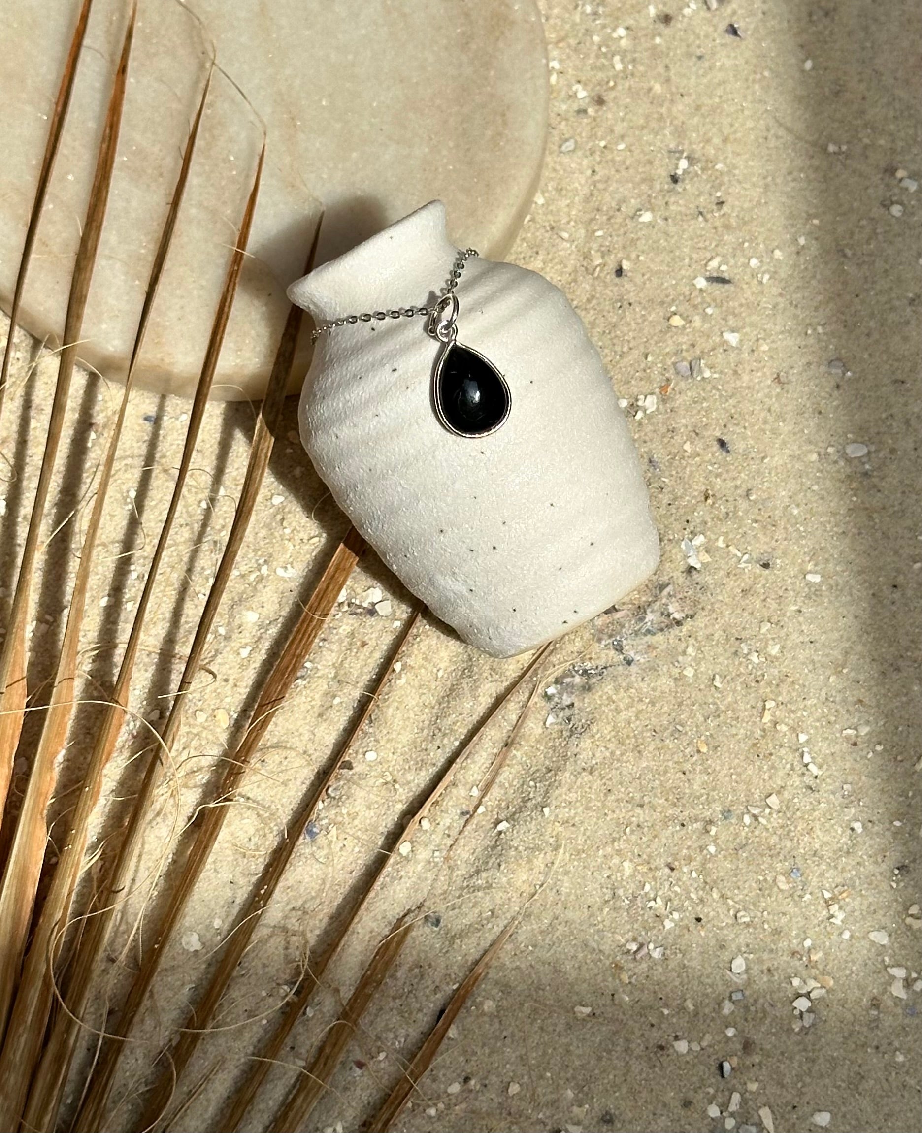 Ein kraftvolles Schmuckstück voller Schutz und Erdung: Dieser elegante Tropfenanhänger aus echtem 925er Silber trägt einen tiefschwarzen Obsidian, der nicht nur optisch fasziniert, sondern auch als Schutzstein gegen negative Energien und als Helfer für Klarheit und innere Stärke geschätzt wird.